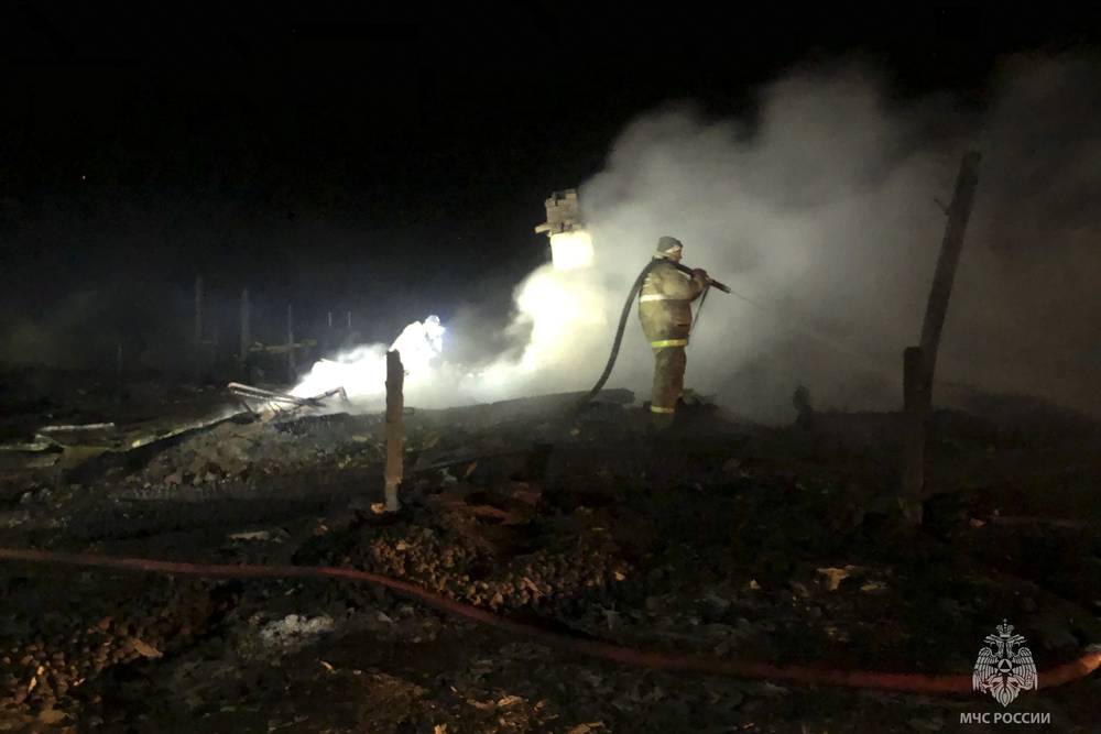 Сигнал о возгорании сухой травы поступил в дежурную часть в 16.48. К моменту прибытия первого подразделения огнем были охвачены два нежилых строения.