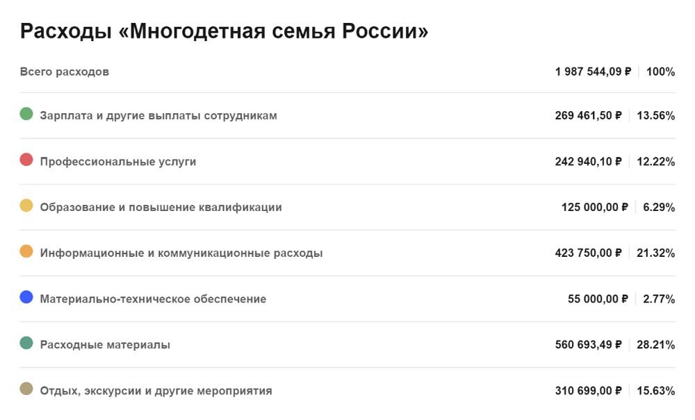 В открытых источниках "Уралинформбюро" нашло редкие упоминания об активностях по проекту. Два круглых стола, онлайн помощь психолога (сотрудника АНО) и малочисленный слет многодетных семей, где кубками были отмечены пять победителей фотовидеоконкурса о многодетных семьях. А вот как отчитались о расходовании 2 миллионов рублей.