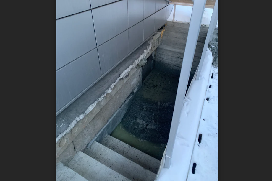 Залитый бетоном вход в помещение гаражей. Фото: Сергей Луппов.