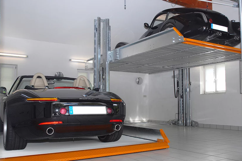 Владельцам 15 "квадратов" было заявлено, что высота паркинга позволяет размещать их машины в два этажа. Для этого они должны самостоятельно приобрести примерно такой парковочный подъемник.