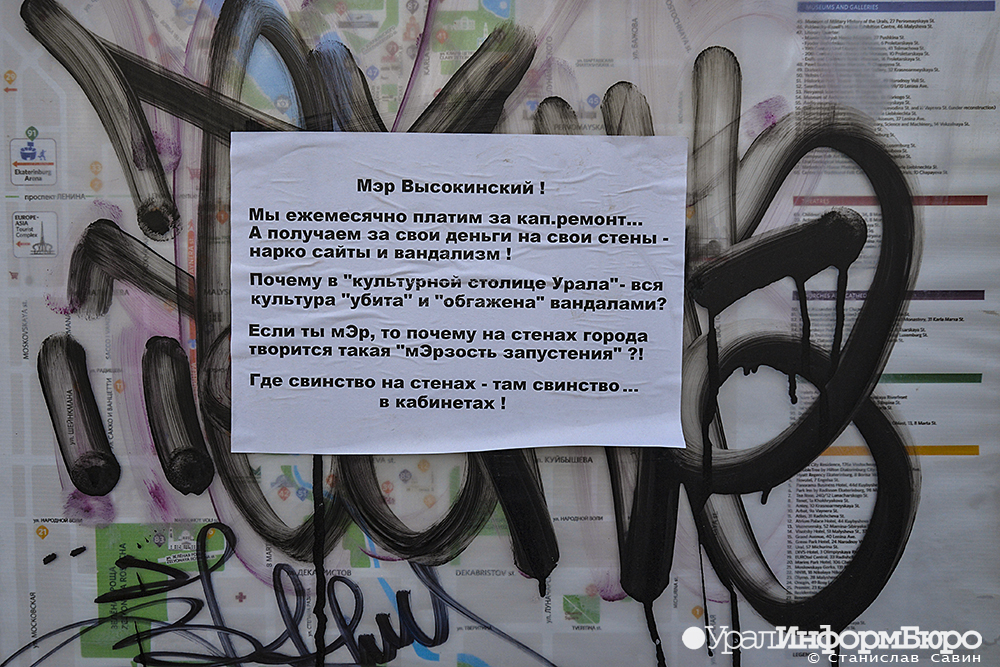 Коммунальный вице-мэр Алексей Бубнов разводит руками: по документально оформленным (!) вандальным правонарушениям в Екатеринбурге волокита тянется по несколько лет. Разумеется, граффитчики в курсе своей безнаказанности.