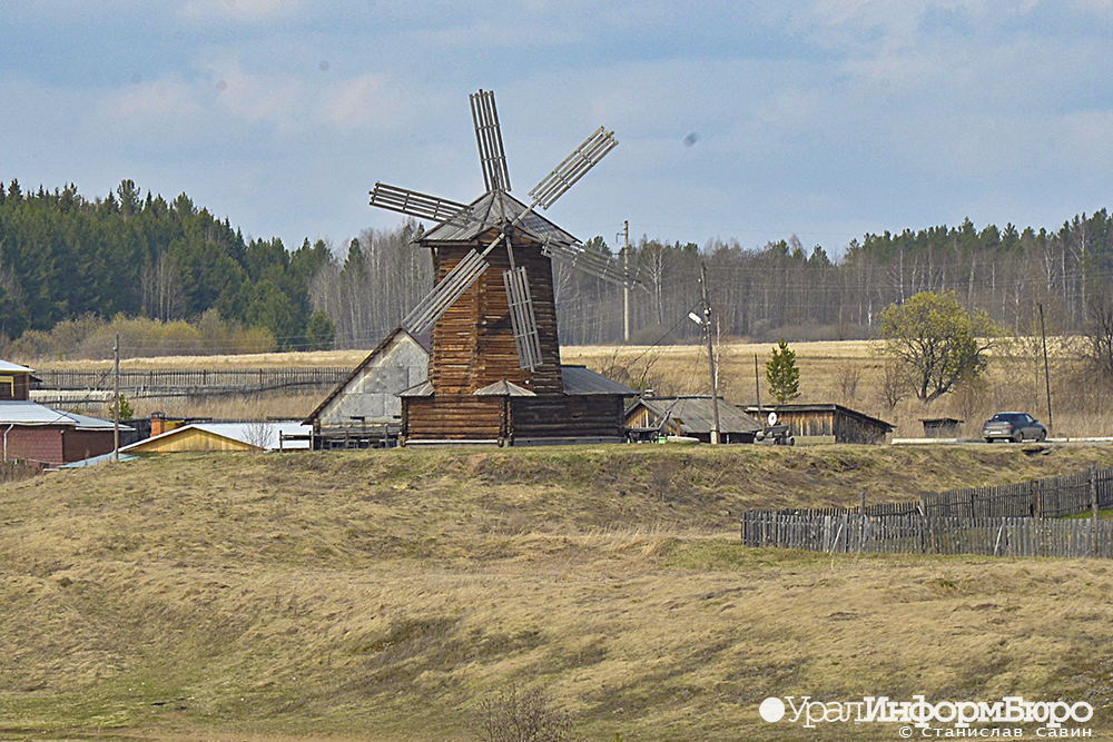 Реконструкция старинной мельницы в музее деревянного зодчества в Нижней Синячихе