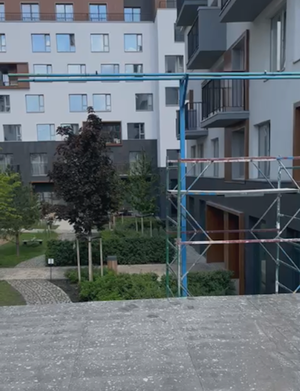 Так выглядит дренчерная система для борьбы с пожарами, установленная на стене урбан-виллы. Скриншот видео Филиппа Ершова.