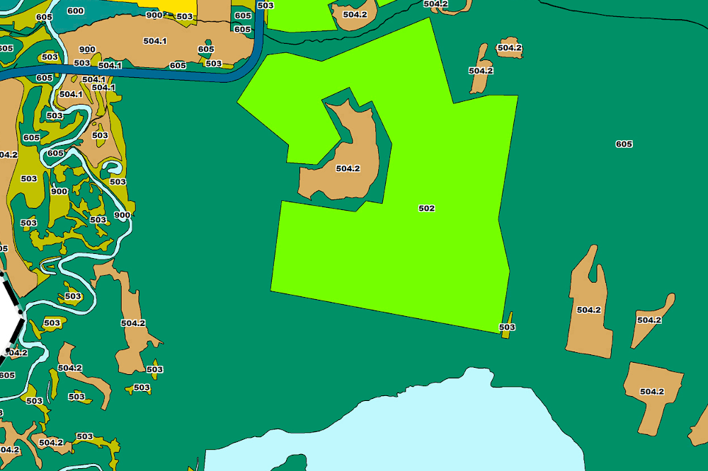 А вот в редакции от ноября 2021 года этого участка среди земель ООПТ уже нет! Любопытно, что за год до этого минприроды разместило закупку на разработку новой карты заказника. На портале госзакупок ее нет, зато есть в архивах портала "Синапс". Техзадание, среди прочего, предусматривает "изменение местоположения и (или) площади ландшафтного заказника относительно данных, указанных в Постановлении № 41-ПП". Получается, "урезку" заказника все же провели?