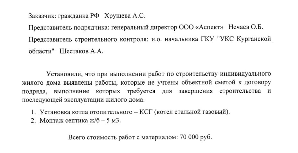 Это еще не весь абсурд! В январе на селян, отказывавшихся подписывать акты приемки домов с браком, начали давить из администрации муниципалитета и Кетовской прокуратуры. Условие высказывалось жесткое – подписывайте до 1 марта! Давили на жалость (посадят же Шалимова!), предвещали неприятности ("Аспект" с вас сотни тысяч по суду взыщет), но народ оказался не лыком шит – сделают все до конца, тогда и подпишем.