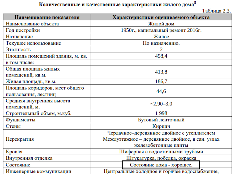 Даже в отчете об оценке помещений отмечено хорошее состояние дома