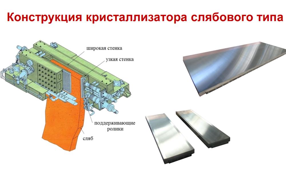 "Сердце" этой машины – кристаллизатор, в котором жидкий металл превращается в слиток, готовую заготовку, не требующую многократного передела – нагрева, ковки и так далее. Стенки кристаллизатора изготовлены из медных сплавов (бронзы) для лучшего теплоотвода. Чтобы они как можно дольше не изнашивались, им необходимо специальное покрытие. И долгое время медные плиты с гальваническими покрытиями приходилось закупать за границей.