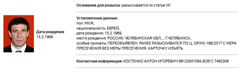 Бывшего челябинского губернатора Юревича переобъявили в розыск