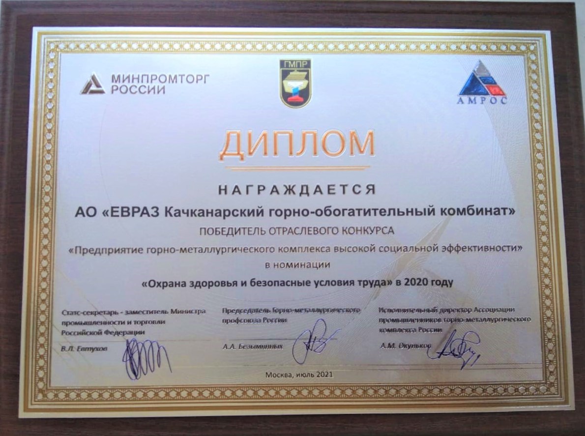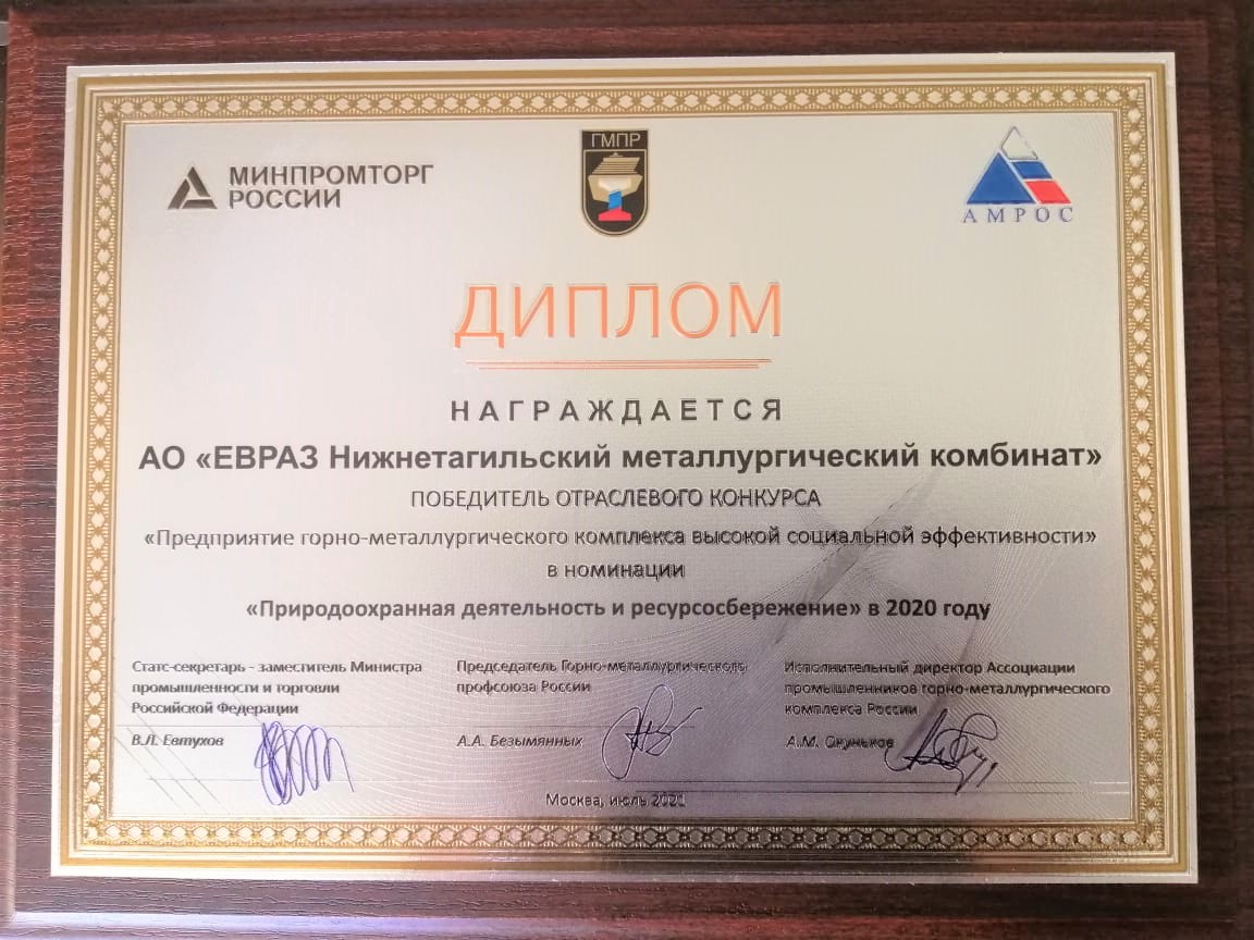 ЕВРАЗ НТМК и ЕВРАЗ КГОК стали победителями XVIII отраслевого конкурса "Предприятие горно-металлургического комплекса высокой социальной эффективности" в номинациях "Природоохранная деятельность" и "Охрана здоровья и безопасные условия труда".