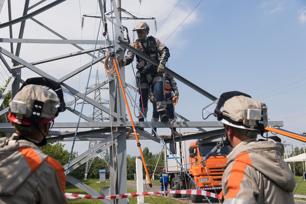 Больше всего времени заняло выполнение задания по замене грозозащитного троса линии 35 кВ. Часть работ проводилась на высоте не менее 18 метров. Успешное прохождение этого этапа давало командам самое большое количество баллов.