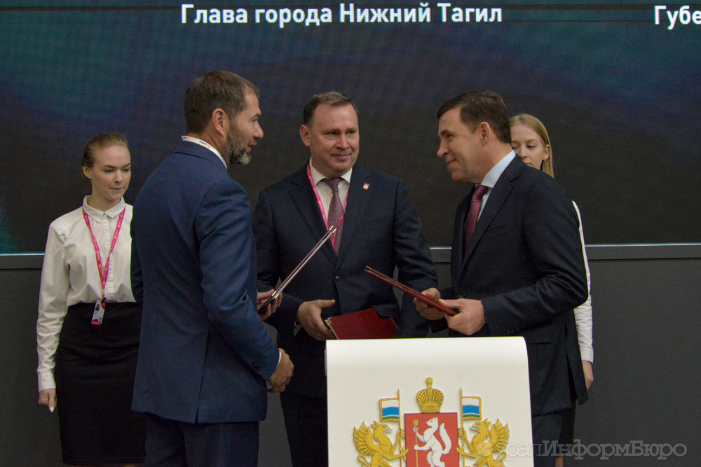 Вице-президент ЕВРАЗа, руководитель дивизиона "Урал" Денис Новоженов, губернатор Свердловской области Евгений Куйвашев и глава Нижнего Тагила Владислав Пинаев 5 июля подписали дополнительное соглашение о социально-экономическом сотрудничестве в рамках выставки "Иннопром-2022". В итоге на развитие второго по численности населения города на Среднем Урале будет дополнительно направлено около 4,2 миллиарда рублей отчислений промышленного холдинга, сообщает "Уралинформбюро".