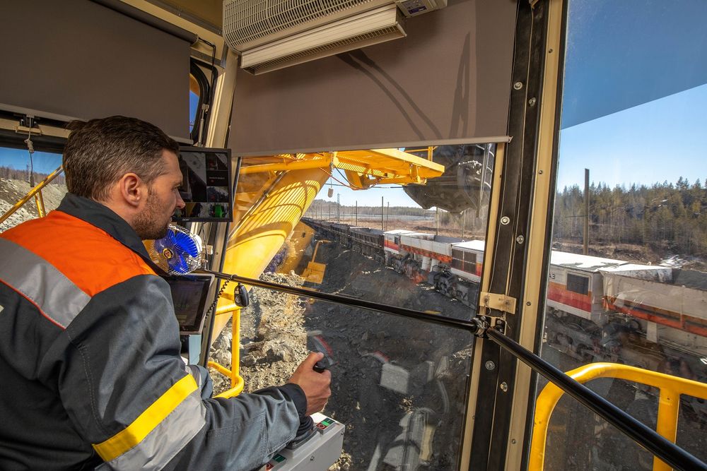 Машина будет грузить горную массу в думпкары для ее дальнейшей доставки на перерабатывающие фабрики. Загрузка одного думпкара занимает 5-7 минут, для этого достаточно десяти ковшей.