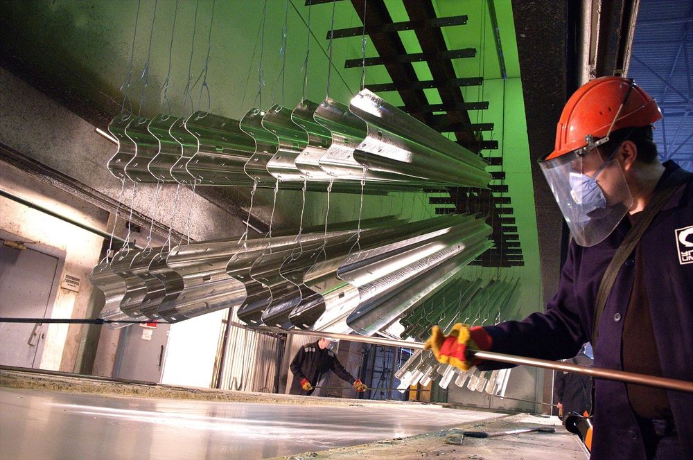 Расплав цинка, в который при цинковании погружают стальные изделия, периодически загрязняется. На дне ванны собирается осадок гартцинка – сплава железа с цинком. Его налипание на изделия приводит к браку цинкового покрытия. Чтобы этого не происходило примерно трижды в месяц, в зависимости от объёмов производства, ванну очищают с помощью грейфера, сообщили "Уралинформбюро" в пресс-службе УГМК.