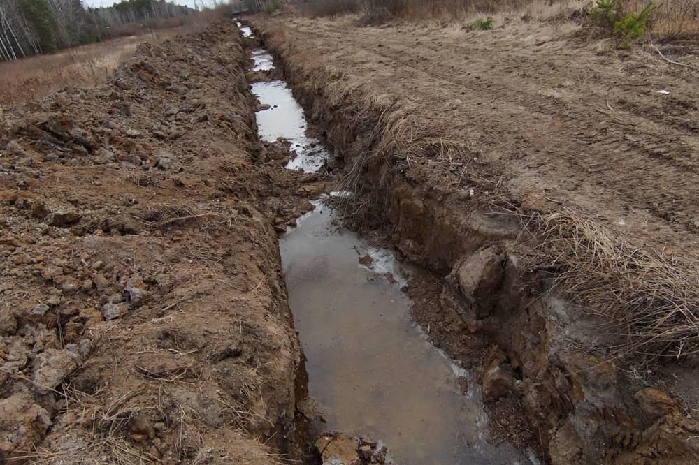 Надзорные органы имели смутное представление о тайной трубе – до момента закрытия птицефабрики в конце 2021 года её так и не нашли. А весной 2023 года "знатоки" провели выемку трубы, оставив после себя впечатляющую траншею. От иловых полей "Среднеуральской" до болота – 442 метра, ширина 4 метра.