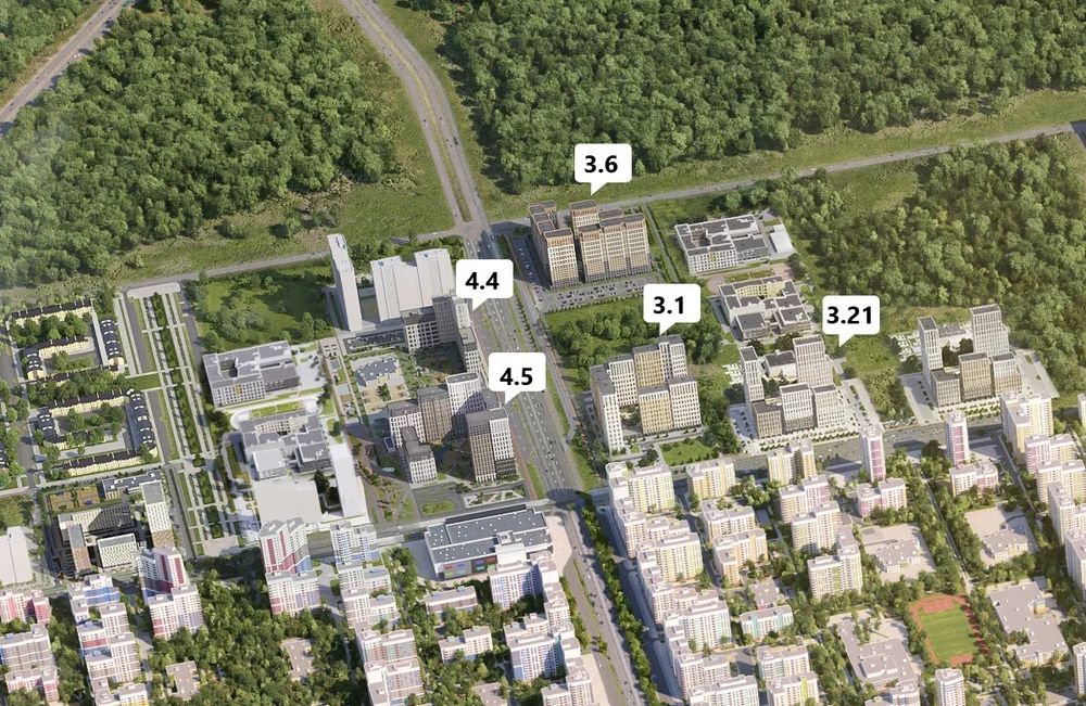 Архитектурный акцент въезда в Академический формируют корпуса 3.6, 3.1, 3.21, 4.4 и 4.5 квартала "Первый Академ". Вместе они создают единый ансамбль, эстетическую составляющую которого выгодно подчеркнет подсветка фасадов. Слева при въезде в район ведется отделка фасадов блока 3.6. На пересечении улиц Вильгельма де Геннина и Краснолесья расположится блок 3.1, а рядом – блок 3.21, где уже открыты продажи. По правой стороне улицы Вильгельма де Геннина начинается строительство блока 4.4, а у блока 4.5 напротив торгового центра завершается отделка фасадов.