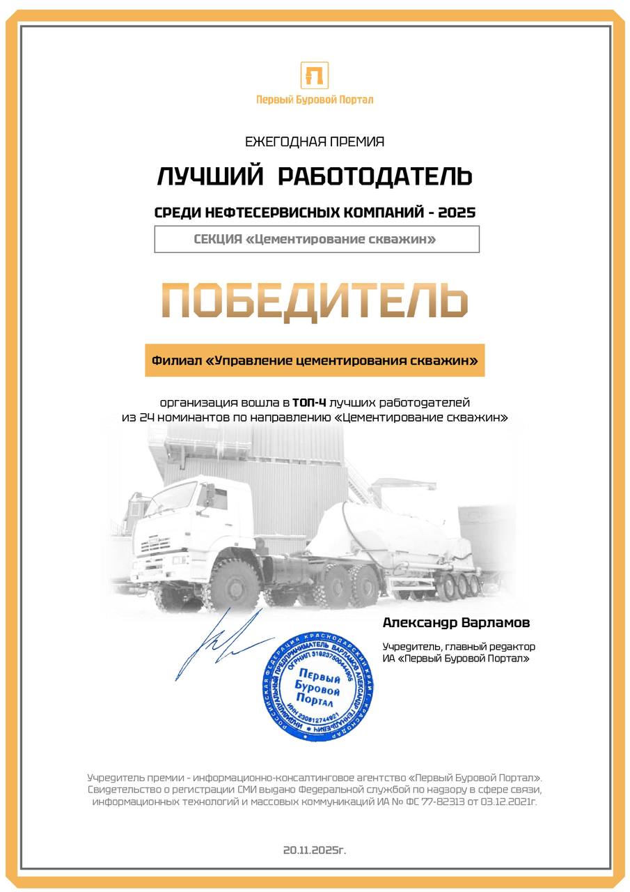 Подразделения ССК вошли в число лучших работодателей года среди нефтесервисных компаний
