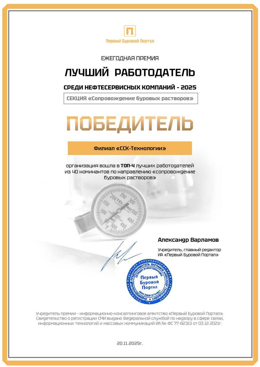 АО "Сибирская Сервисная Компания" 25 лет оказывает услуги для предприятий нефтегазодобывающего комплекса, обеспечивает полный сервис по реализации буровых работ, опираясь на собственные технологические филиалы. Главная ценность АО "ССК" – команда профессионалов. Самое совершенное оборудование возможно применять, только когда есть высококвалифицированные кадры. За плечами предприятия четверть века успешных решений на благо энергетической безопасности России. Впереди – новые перспективы и новые достижения. Неизменными остаются главные принципы: надежность в партнерстве, качество в работе, уверенность в будущем.