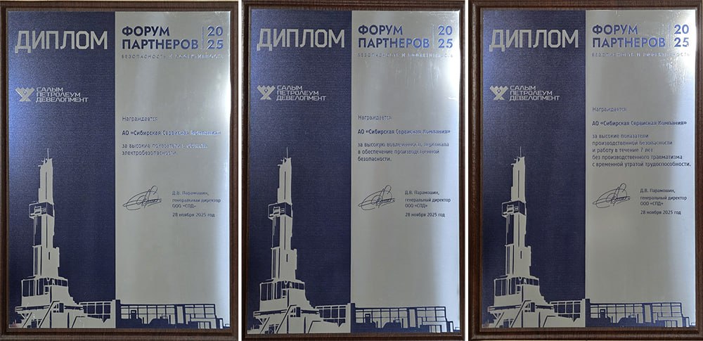 По итогам работы в 2025 году АО "Сибирская Сервисная Компания" было названо в числе лучших на традиционном форуме партнеров "Безопасность и эффективность" ООО "Салым Петролеум Девелопмент". ССК удостоена дипломов в номинациях "За высокие показатели по электробезопасности", "За высокую вовлеченность персонала в обеспечение производственной безопасности" и "За высокие показатели производственной безопасности и работу в течение 7 лет без производственного травматизма с временной утратой трудоспособности".