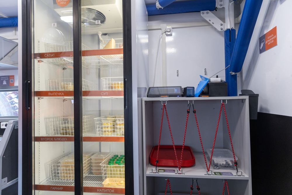 Сбалансированное меню включает свежеприготовленные блюда. Впервые в нем появились салаты, молочные каши и выпечка. Ранее блюда с ограниченными сроками хранения и особенными требованиям к температурному режиму были недоступны на удаленных площадках из-за отсутствия в старых передвижных пунктах холодильников. Как и в стационарных столовых, на питание распространяется корпоративная скидка.