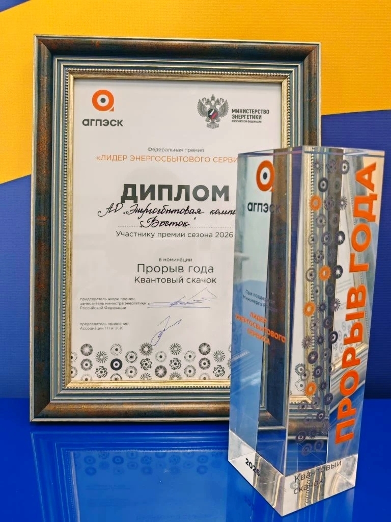 В 12 номинациях конкурса приняли участие более 80 энергосбытовых компаний. В номинации "Прорыв года. Квантовый скачок" лучшим был назван масштабный проект ЭК "Восток" – клиентский сервис "Онлайн-центр обслуживания клиентов". Экспертное жюри, в которое вошли представители Минэнерго и отраслевого сообщества, высоко оценило качественный прорыв компаний в параметрах обслуживания клиентов благодаря новым подходам и творческим решениям.