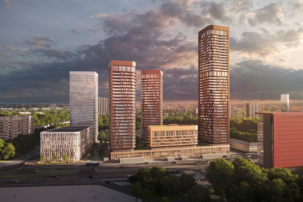 На втором этапе проекта появятся три жилых башни с единой стилобатной частью. Две из них планируются высотой до 100 метров, третья – 150 метров. На стилобатной части расположится благоустроенный двор с озеленением и малыми архитектурными формами. Эскизный проект, а также рабочая проектная документация будут подготовлены в текущем году.
