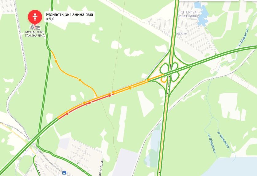 ЧП произошло недалеко от поворота на Ганину Яму. О пострадавших пока не сообщается.