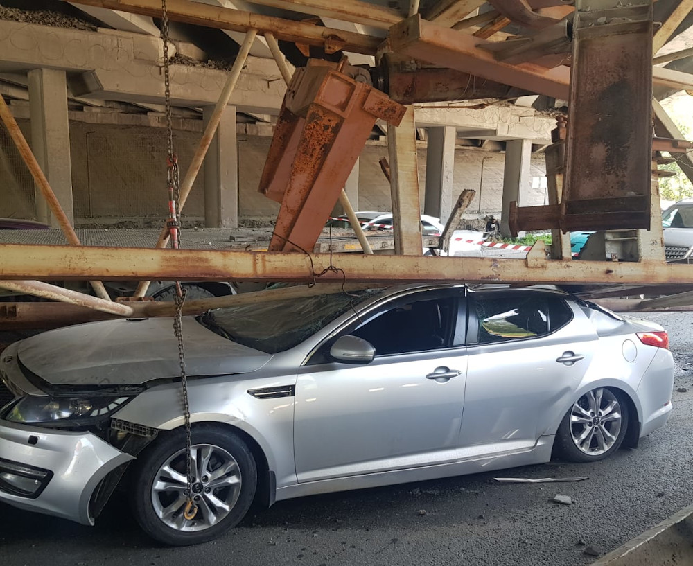 "По оперативной информации, металлическая конструкция, которая была слабо закреплена на грузовом автомобиле, зацепилась за мост и упала на легковой автомобиль, ехавший в попутном направлении", – рассказывали в главке МЧС.