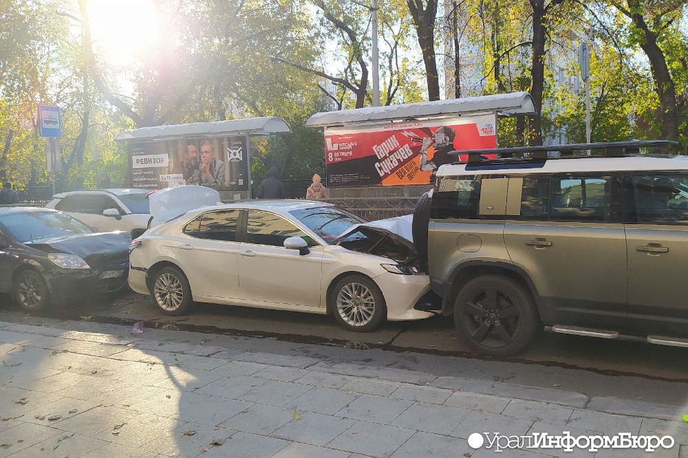Как рассказал агентству очевидец, рядом с трамвайной остановкой столкнулись три иномарки, ехавшие в направлении площади 1905 года. Судя по снимкам с места аварии, ее причиной могла стать неправильно выбранная дистанция.