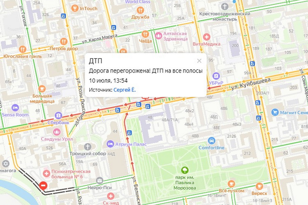 Из-за массового ДТП перекрыта улица Куйбышева в Екатеринбурге