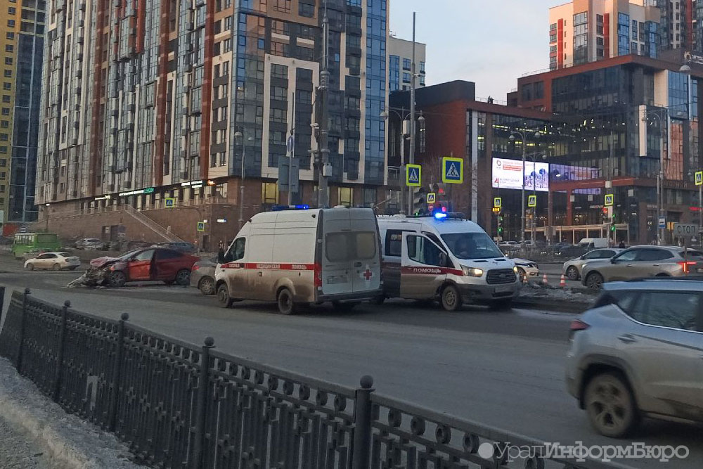 В Екатеринбурге иномарка врезалась в автомобиль полиции, ехавший с включенной мигалкой