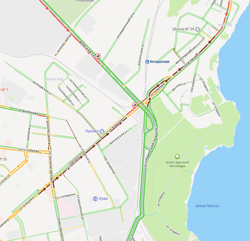 На месте ДТП перекрыты две полосы в сторону центра. Объезд осуществляется по встречной полосе, поэтому движение в направлении Березовского тоже затруднено.