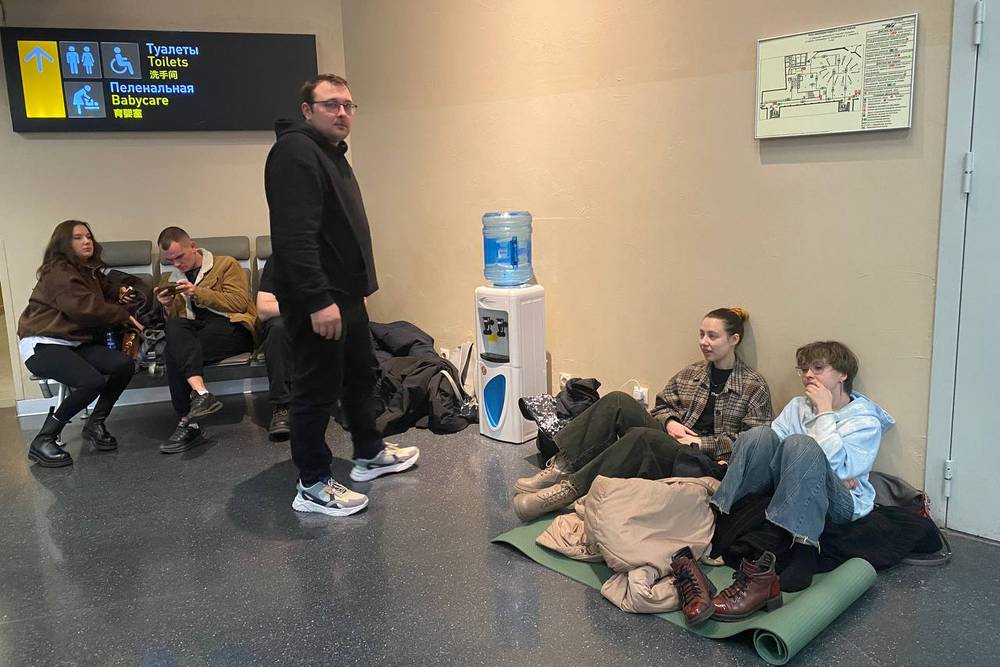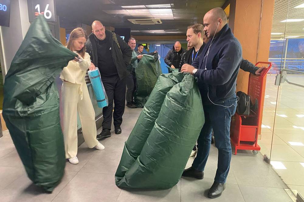 Между тем в зоне ожидания аэропорта Екатеринбурга пассажирам отложенных рейсов выдают надувные диваны и коврики, а также раздают бесплатно воду.