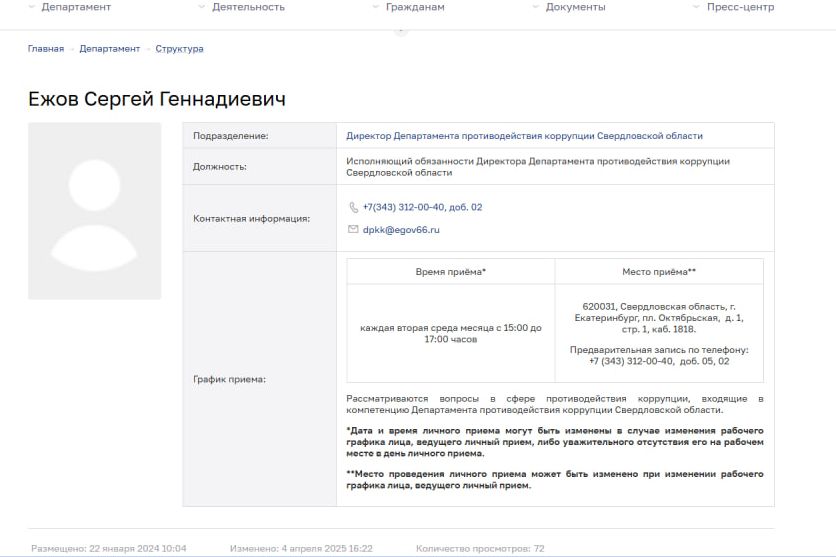 Скриншот: сайт департамента противодействия коррупции Свердловской области