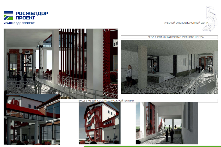 Проект учебного центра (есть в распоряжении издания) разработан специалистами института Росжелдорпроект по заказу СвЖД. Согласно задумке авторов, Центр разместится в веерном депо на улице Яламова (рядом с главным входом в парк) и будет представлять из себя четырехэтажное здание в форме цифры 5, выполненное из красного кирпича и бутового камня.
