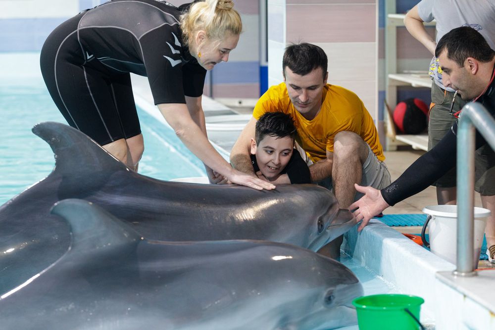 "Миша сначала удивился, что в небольшом помещении три дельфина. У него глаза такие были! Обрадовался, особенно когда разрешили потрогать. Он с ними поздоровался, потом бросал мячик, кольца, говорил "Спасибо!", обнимал их. Для него это незабываемые эмоции", - делится Ольга Бакланова.