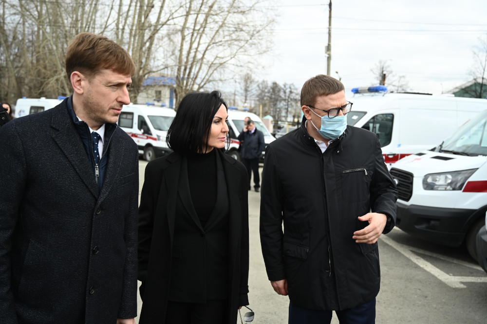 Перед отправкой в учреждения здравоохранения скорые вместе с медиками осмотрели губернатор Южного Урала Алексей Текслер и председатель Попечительского совета Благотворительного фонда РМК Татьяна Алтушкина.