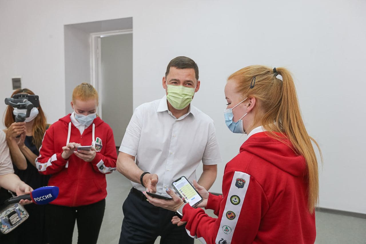 Вместе с волонтерами Евгений Куйвашев протестировал возможность онлайн-голосования на праймериз при помощи волонтерского планшета.
