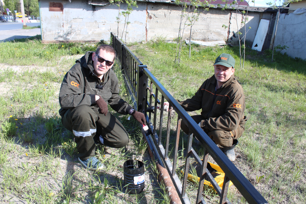 В Нефтеюганском филиале Сибирской Сервисной Компании прошел традиционный субботник. Его участники убрали оставшиеся с прошлого года листья, покрасили заборы, крышки люков и прочее, освежили зеленые насаждения на территории базы.