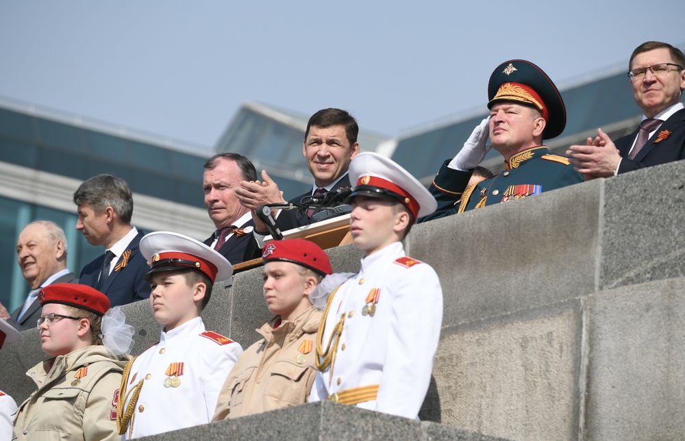 Трибуна монумента Ленину во время парада в честь Дня Победы. Фото: департамент информполитики Свердловской области и пресс-служба администрации Екатеринбурга