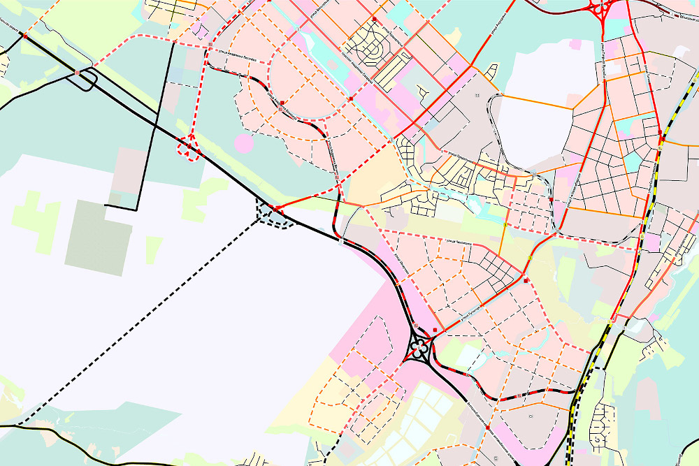 Кроме того, в генплан заложено создание транспортных развязок на Объездной дороге (пересечение с улицей Серафимы Дерябиной), улице Комсомольской, пересечении ЕКАД с улицей Верхнеуфалейской, пересечении Южного обхода с Сибирским трактом. Также запланировано построить Южный обход Екатеринбурга и аэропорта Кольцово через Ревду – Дегтярск – Курганово – Седельниково – Косулино. На этом объекте также появится транспортная развязка.