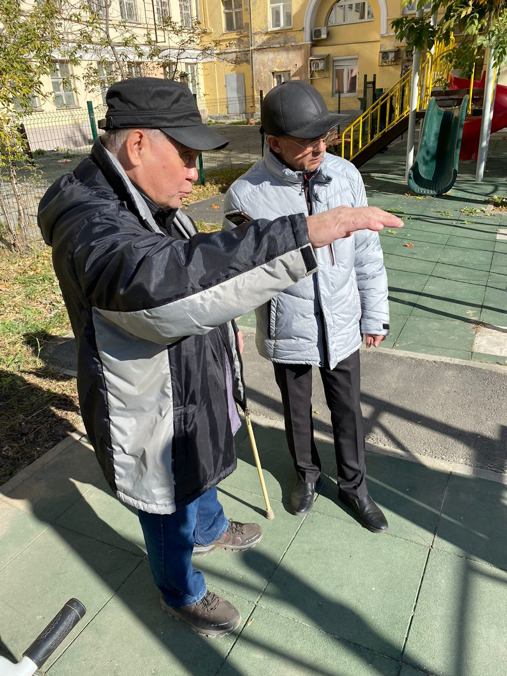 Сергей Лоншаков (слева) оценивает качество благоустройства. Фото: пресс-служба "Корпорации "Маяк"