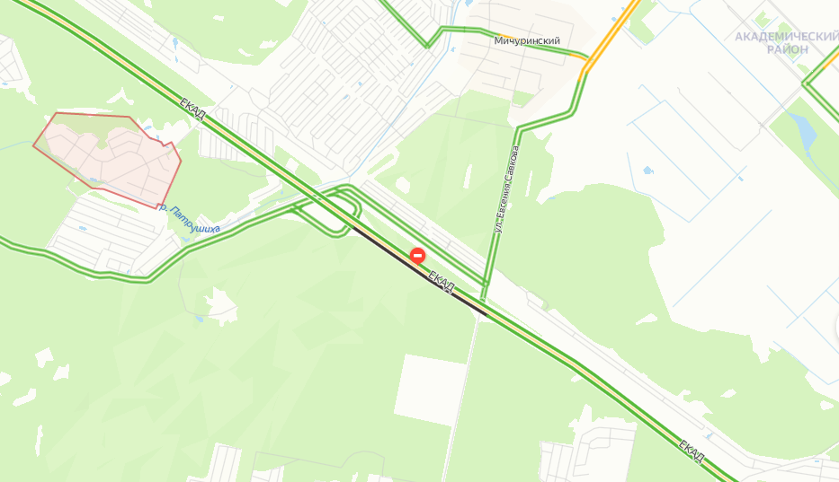 О перекрытии автодороги сообщают подписчики паблика "Инцидент Екатеринбург" во "ВКонтакте". Также ограничение обозначено и на "Яндекс.Картах", где указано, что участок будет перекрыт сегодня до полуночи.