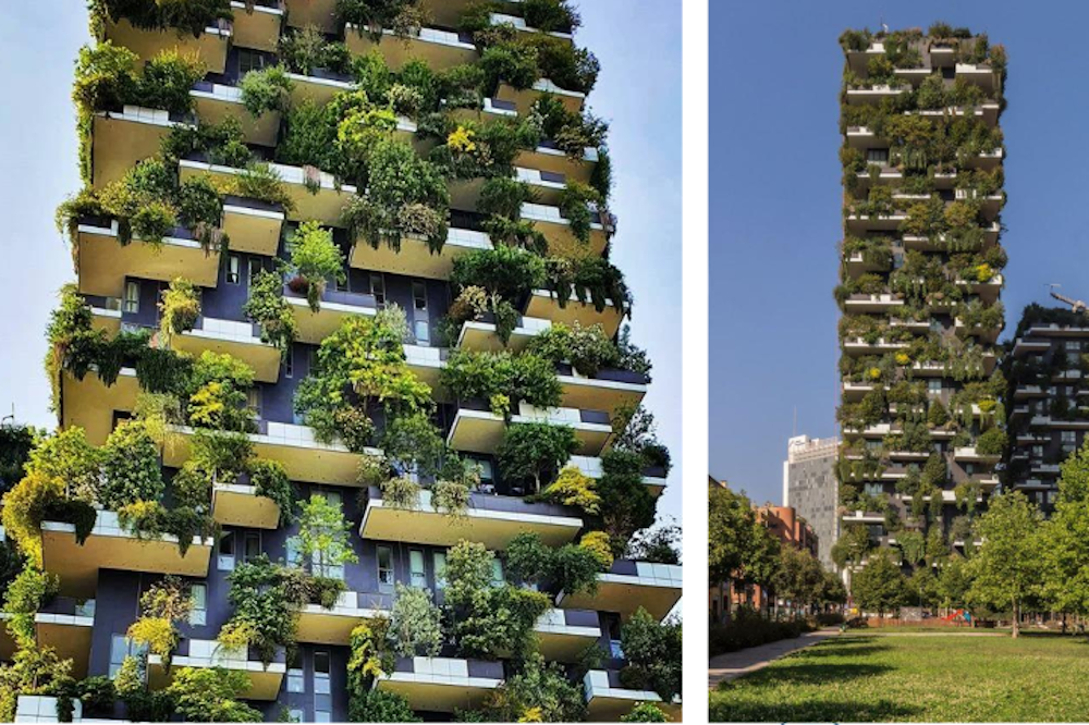 "Миланский" метод высадки крупномеров на фасадах зданий. Визуализация: эскизный проект "Территория ландшафтных решений Green Park"