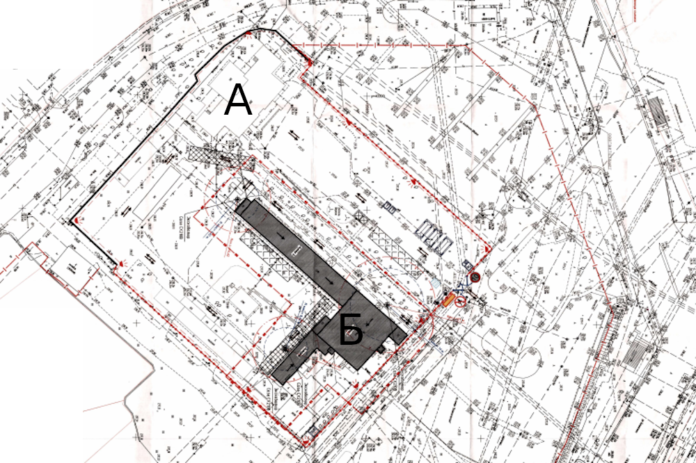 Схема участка. Литерой Б обозначено здание постройки 1960 года, литерой А - здание Уктусского аэровокзала. Схема: ООО "Арт-Хаус"