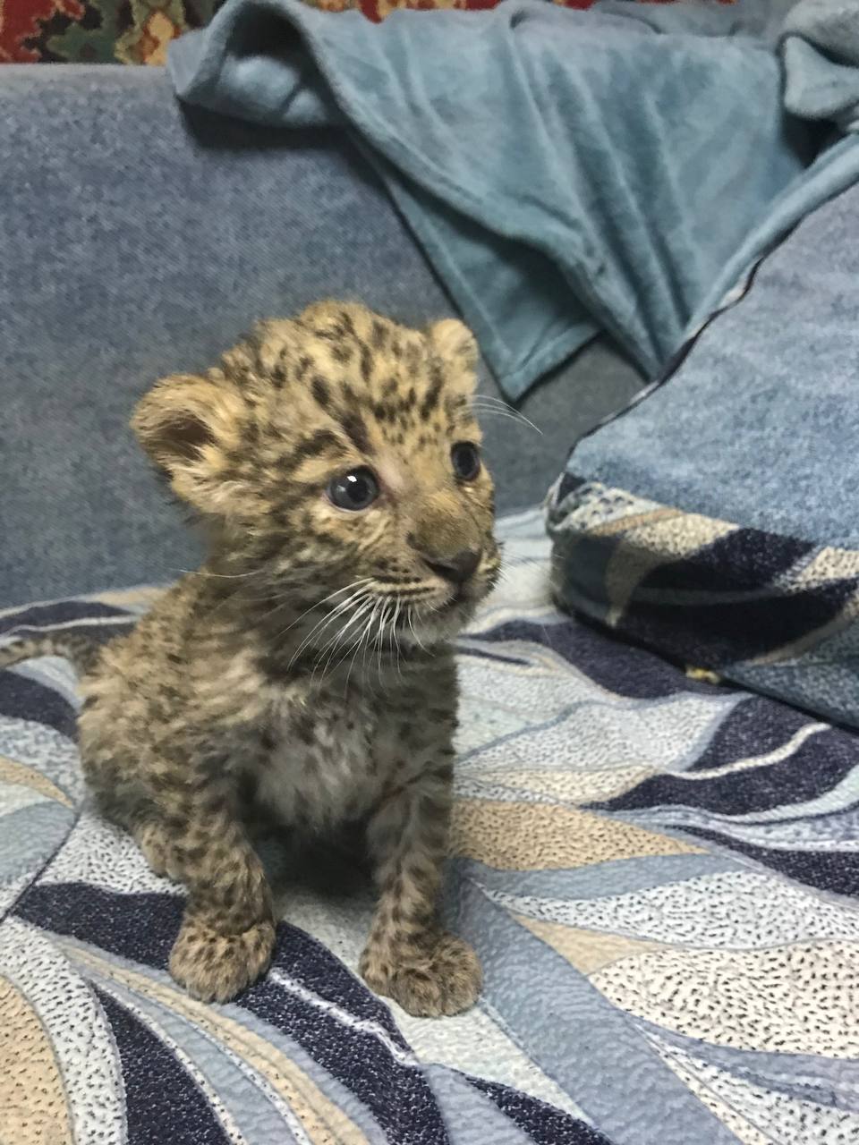 Родившаяся в передвижном зоопарке Ева могла погибнуть в первые дни жизни - от котенка отказалась мать. Карен Даллакян собственноручно выкормил леопарда из пипетки. Сейчас абсолютно здоровой хищнице полтора года.