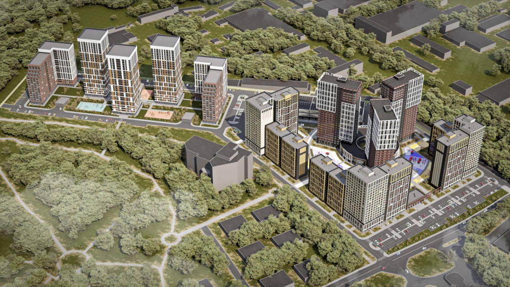 Первая очередь предполагает строительство нескольких жилых домов разной высоты (в том числе 25-этажных), детского сада на 300 мест, офисной недвижимости и шестиуровневого паркинга.