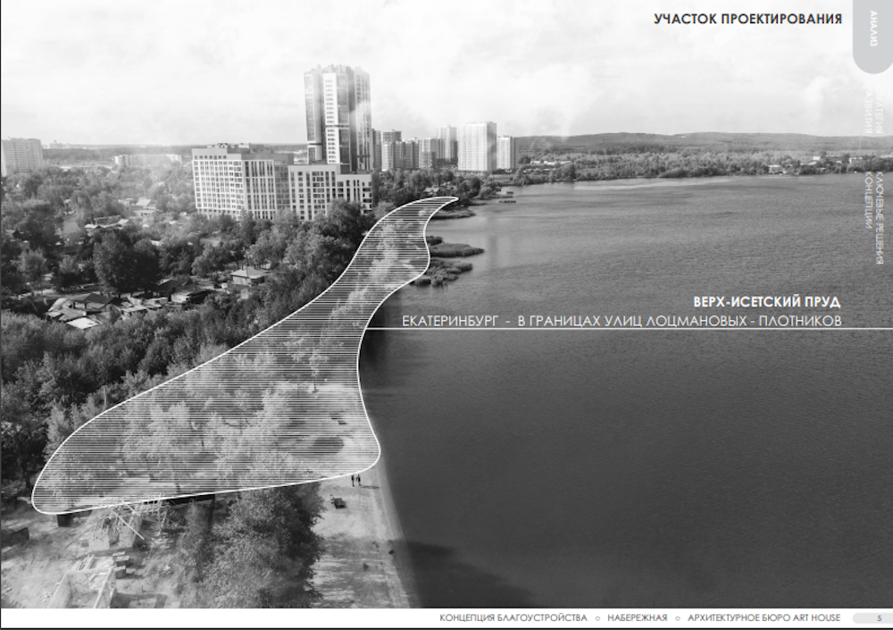 Совет по по развитию общественных пространств Екатеринбурга рассмотрел концепцию набережной Верх-Исетского пруда (участок между улицами Лоцмановых и Плотников), разработанную архитектурным бюро Art House Studio. Согласно задумке авторов, заросший деревьями дикий пляж протяженностью 730 метров должен преобразиться в двухуровневое общественное пространство с детскими и спортивными зонами, связанное пешеходными и велодорожками, сообщает "Уралинформбюро".