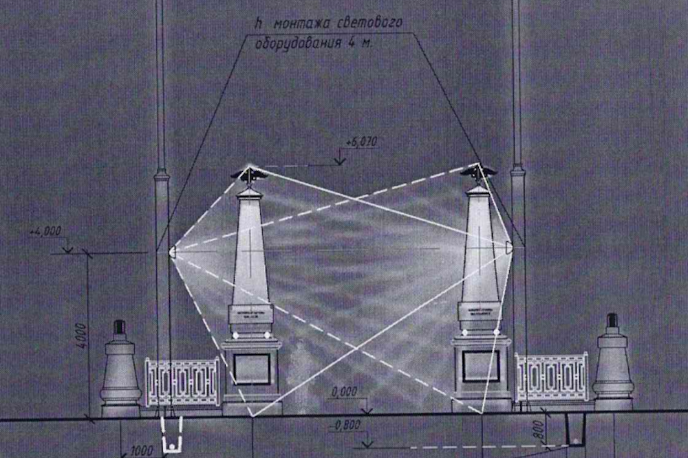 Предполагаемая система освещения обелисков. Рисунок: проектная документация