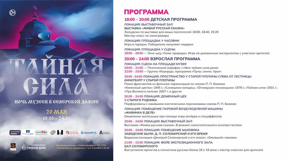 Музейный комплекс "Северская домна", расположенный на территории Северского трубного завода (входит в Трубную Металлургическую Компанию), приглашает прикоснуться к "Тайной силе". Это мероприятие пройдет 20 мая в рамках всероссийской акции "Ночь музеев", сообщает "Уралинформбюро".