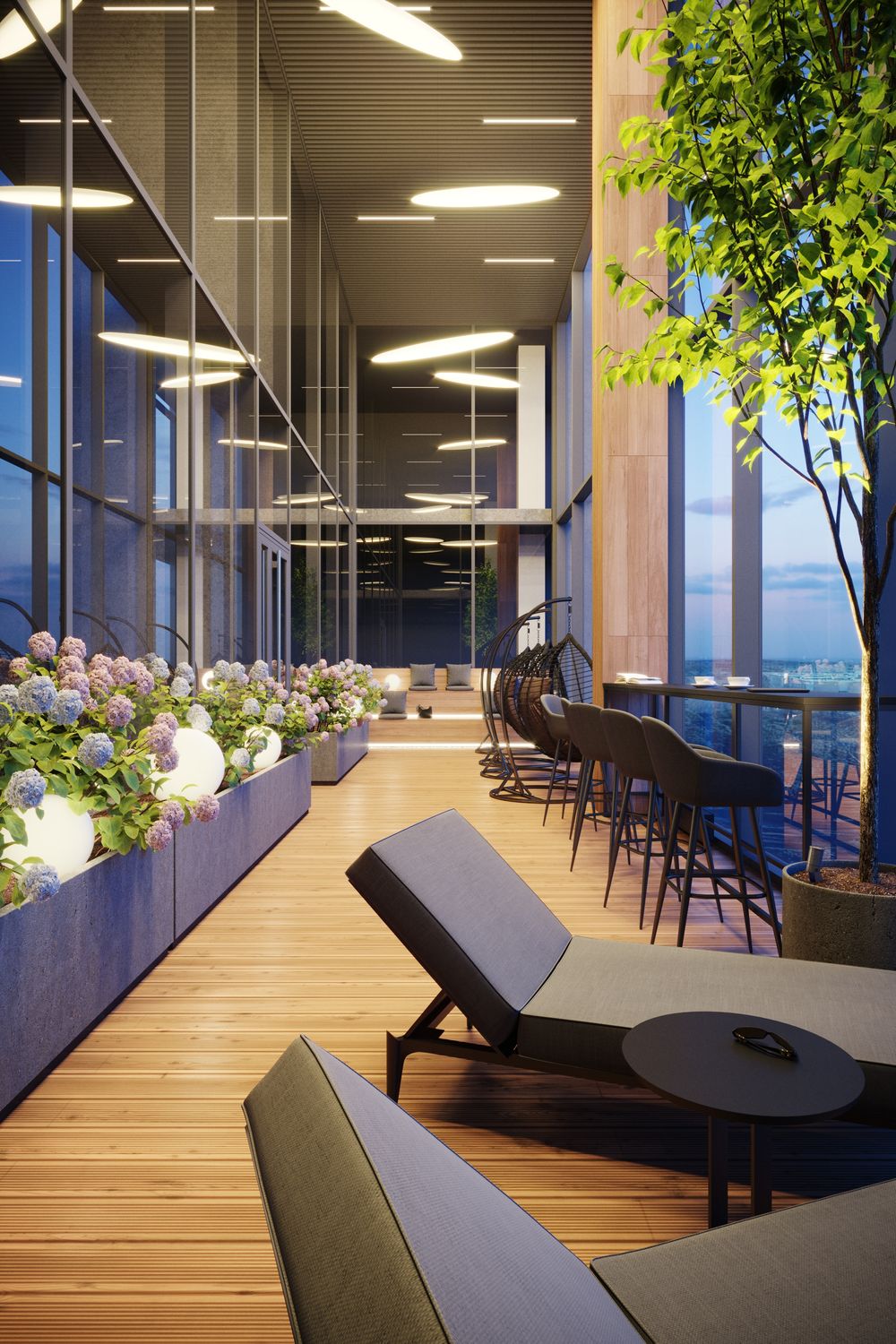 По замыслу девелопера, планировки будут максимально гибкими и адаптивными, когда технические решения могут легко меняться под конкретные запросы бизнеса и сотрудников – под формат open space или небольшие офисы. Моделями нового тренда выступили штаб-квартиры крупнейших мировых корпораций Google, "Яндекс" и Сбер Сити. Офисы будущего – просторные светлые помещения различных форматов с собственными зелеными оазисами (террасами и зимним садом). Потолки высотой (3,6-7,5 метра) дадут дополнительный простор для дизайнерских решений, а большие панорамные окна позволят наслаждаться лучшими видами города.